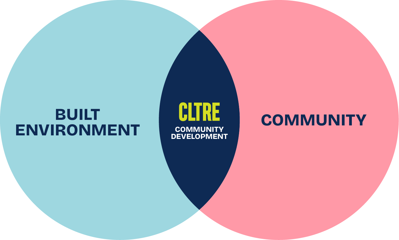 If you imagine a Venn diagram — the built environment on one side, the community on the other — community development is the overlap. CLTRE exists to make sure that overlap actually works.